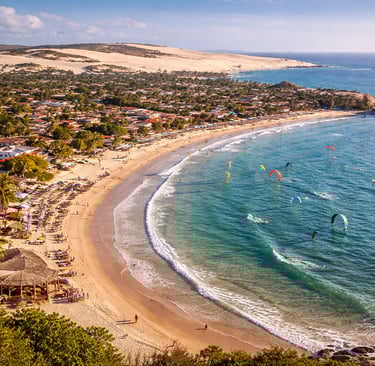 Gericoacoara, frequentemente chamada de "Jeri", é uma vila situada no estado do Ceará, Brasil, conhecida por suas paisagens deslumbrantes e um ambiente acolhedor. Localizada a cerca de 300 km da capital cearense, Fortaleza, esta joia do litoral brasileiro proporciona aos visitantes uma experiência de imersão na natureza. Suas praias de areias brancas, lagoas de água doce e dunas de areia oferecem um panorama deslumbrante que torna Gericoacoara um destino turístico em ascensão.