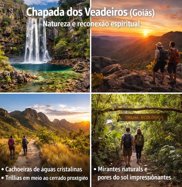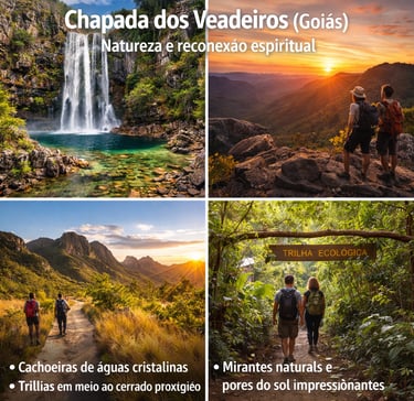 Reconhecida por sua energia natural e biodiversidade, a Chapada dos Veadeiros é ideal para quem busca cachoeiras, trilhas, paisagens preservadas e experiências de reconexão espiritual.
